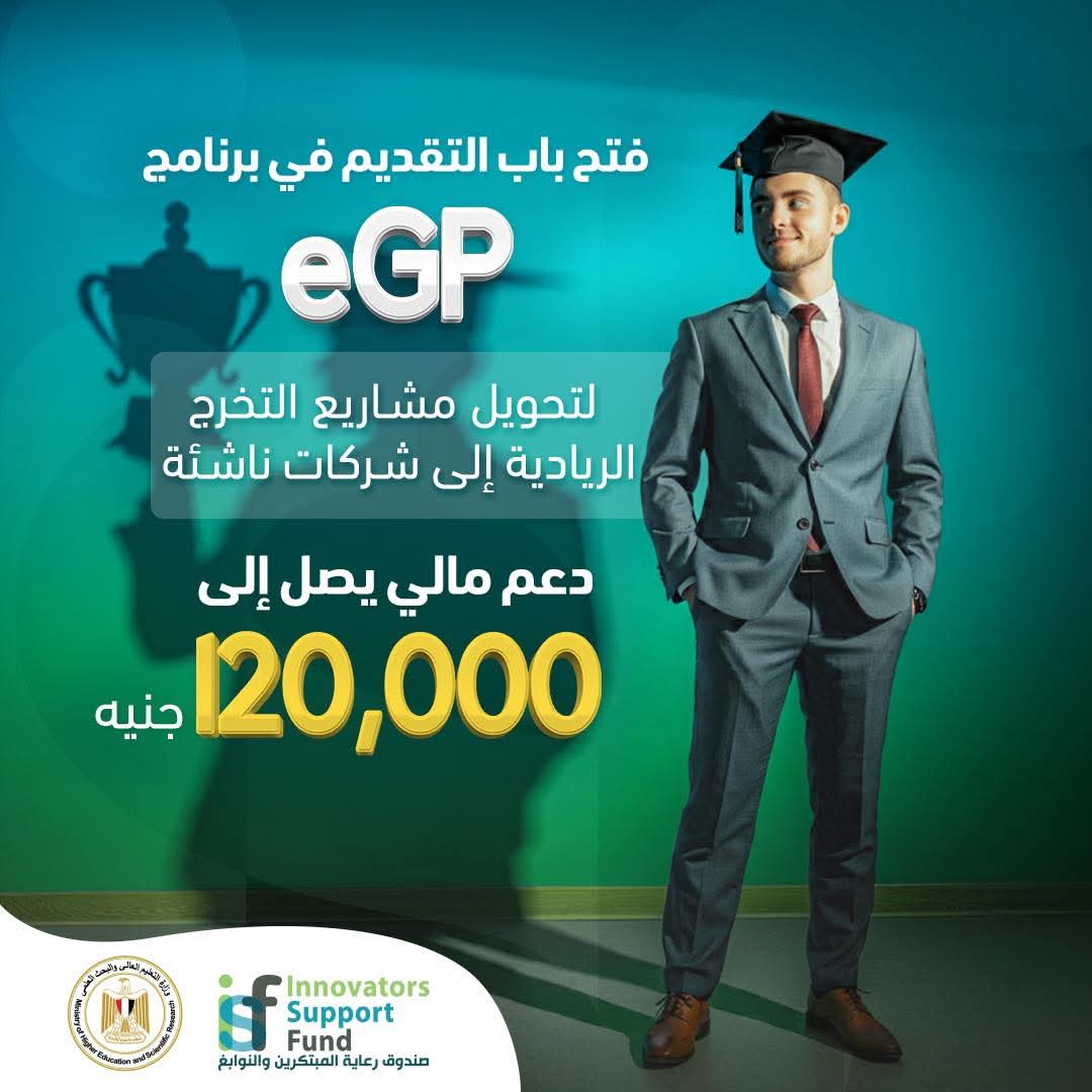 أعلن صندوق رعاية المبتكرين والنوابغ عن فتح باب التقدم في برنامج eGP 2025 الذي يهدف إلى دعم مشروعات التخرج العلمية والمجتمعية وتطويرها لتحويلها إلى مشروعات ريادية.
