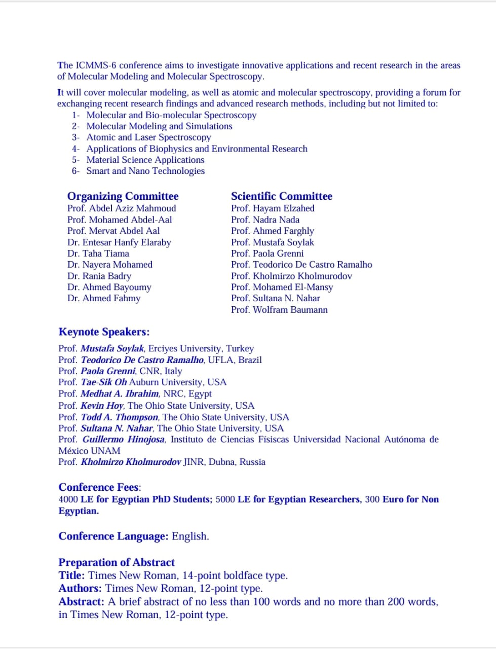 جدير بالذكر أن عدد البحوث المشاركة بالمؤتمر تبلغ 94 بحثا تتضمن عرضًا وافيًا لأحدث المستجدات والتطبيقات الحديثة في مجال الأطياف الذرية والجزيئية والنمذجة الجزيئية، كما سيتم إلقاء 9 محاضرات لعدد من كبار المتخصصين في مجال الأطياف في مصر والعالم.