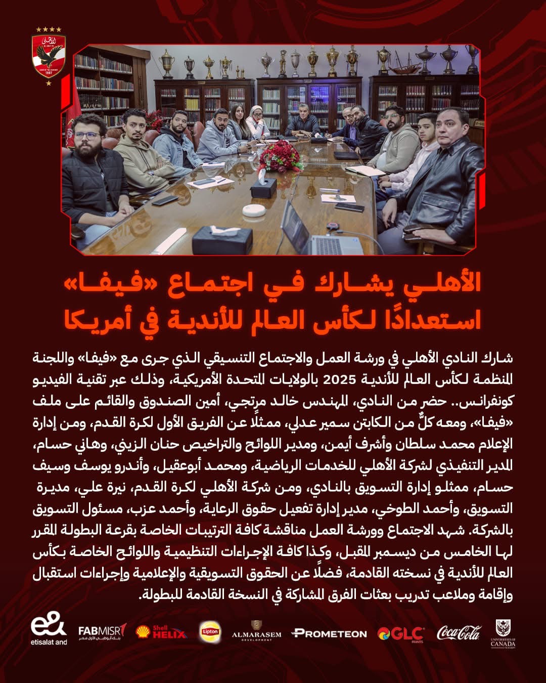 الأهلي يشارك في الاجتماع التنسيقي للفيفا استعدادًا لمونديال الأندية بأمريكا
