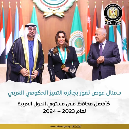 منال عوض تفوز بجائزة أفضل محافظ على مستوى الدول العربية