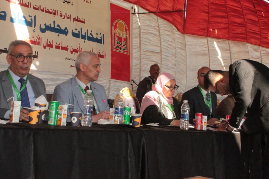 وشهد ختام ماراثون انتخابات الاتحادات الطلابية؛ حضور الدكتور أحمد عبد المولى نائب رئيس الجامعة لشئون التعليم والطلاب، ورئيس اللجنة العليا للإشراف على الانتخابات، وأعضاء اللجنة:الدكتورة مديحة درويش عميد كلية الطب البيطري، والمشرف العام على الأنشطة الطلابية، ومقرر اللجنة، إلى جانب لفيف من أعضاء اللجنة التي تضم: الدكتور عبد الحميد أبو سحلي عميد كلية العلوم، والدكتور علاء عطية عميد كلية الطب، والدكتور دويب حسين صابر عميد كلية الحقوق (عضو قانوني)، والأستاذ عزالدين المنصوري أمين كلية الآداب، والدكتور هيثم إبراهيم مدير عام الإدارة العامة لرعاية الطلاب، والطالب أحمد محمد حسين كلية الطب - الفرقة الخامسة، والطالبة رانيا حسن شحاتة أحمد كلية الصيدلة - الفرقة الخامسة.