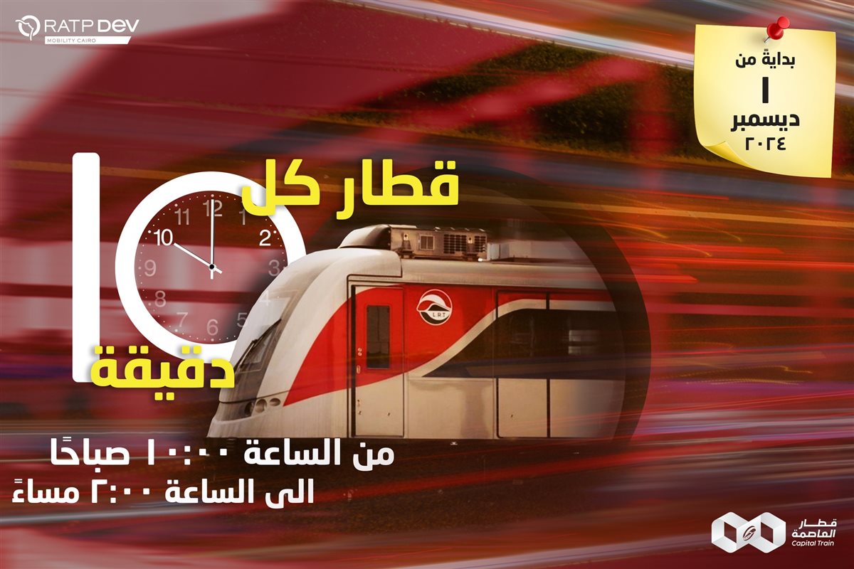 وجاء الإعلان الرسمى للشركة كما يلى: لجميع ركاب قطار العاصمة، بدايةً من ١ ديسمبر ٢٠٢٤، القطارات هتوصل كل ١٥ دقيقة من الساعة ١٠:٠٠ صباحًا إلى ٢:٠٠ مساءً من محطة عدلي منصور لمحطة مدينة الفنون والثقافة ذهابًا وإيابًا.