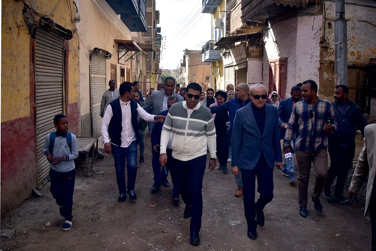 تفقد المهندس عبد المطلب عمارة محافظ الأقصر، منطقة القيسارية بمدينة إسنا، سيرا على الأقدام، وهى المنطقة المحيطة بمعبد إسنا وما بها من منازل أثرية وبازارات سياحية ومعصرة الزيوت وبيت النول.