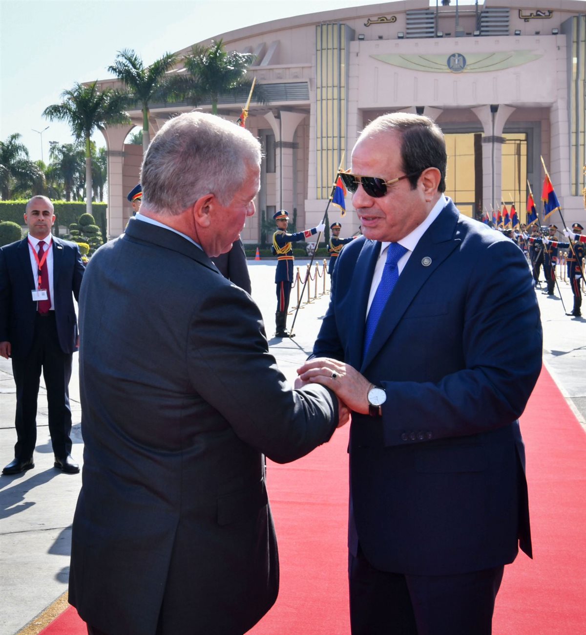 كما استقبل الرئيس عبد الفتاح السيسي، العاهل الأردني الملك عبد الله الثاني بن الحسين، حيث عقد الجانبان جلسة مباحثات بمشاركة وفدي البلدين.