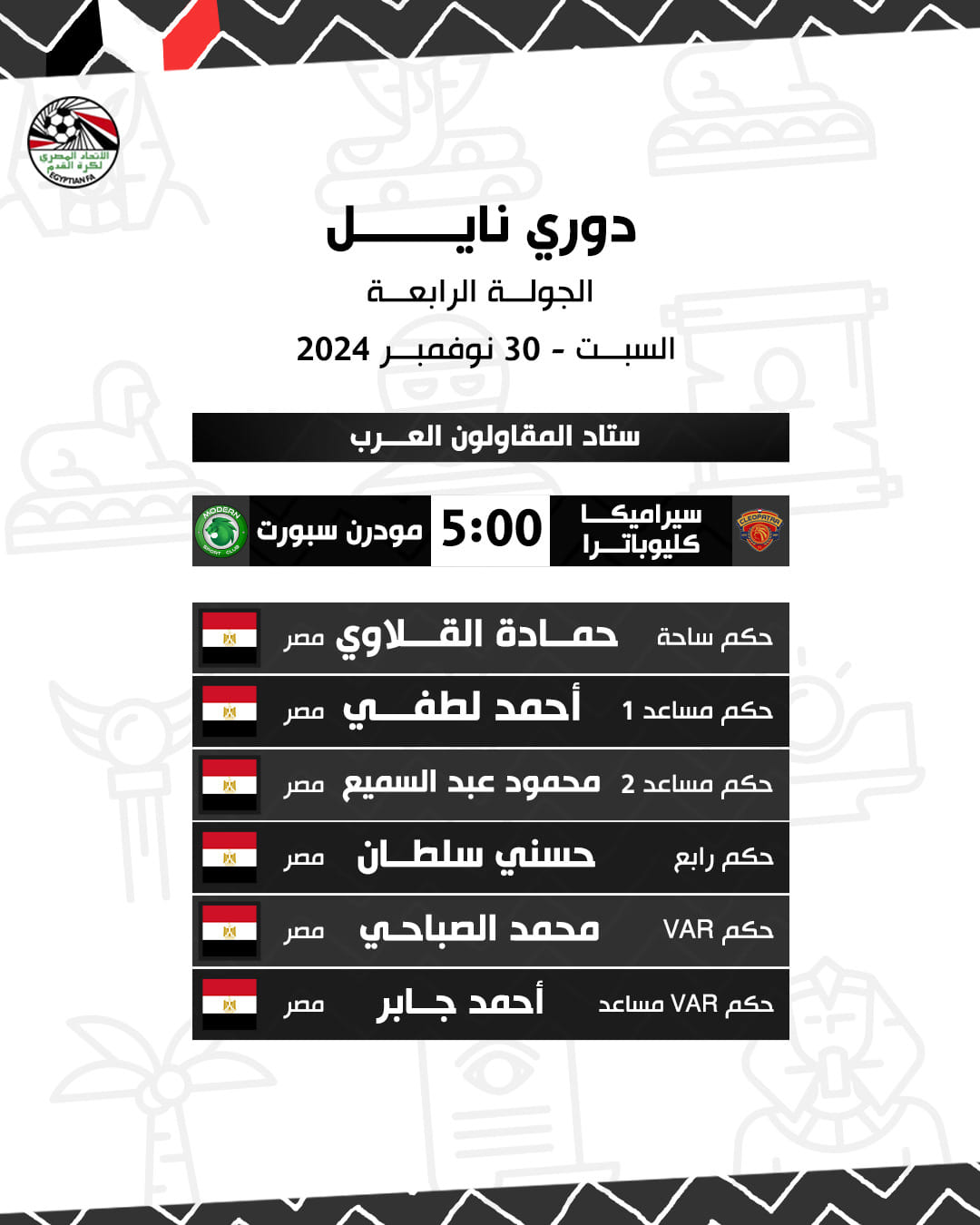 حكام مباراة سيراميكا ضد مودرن سبورت