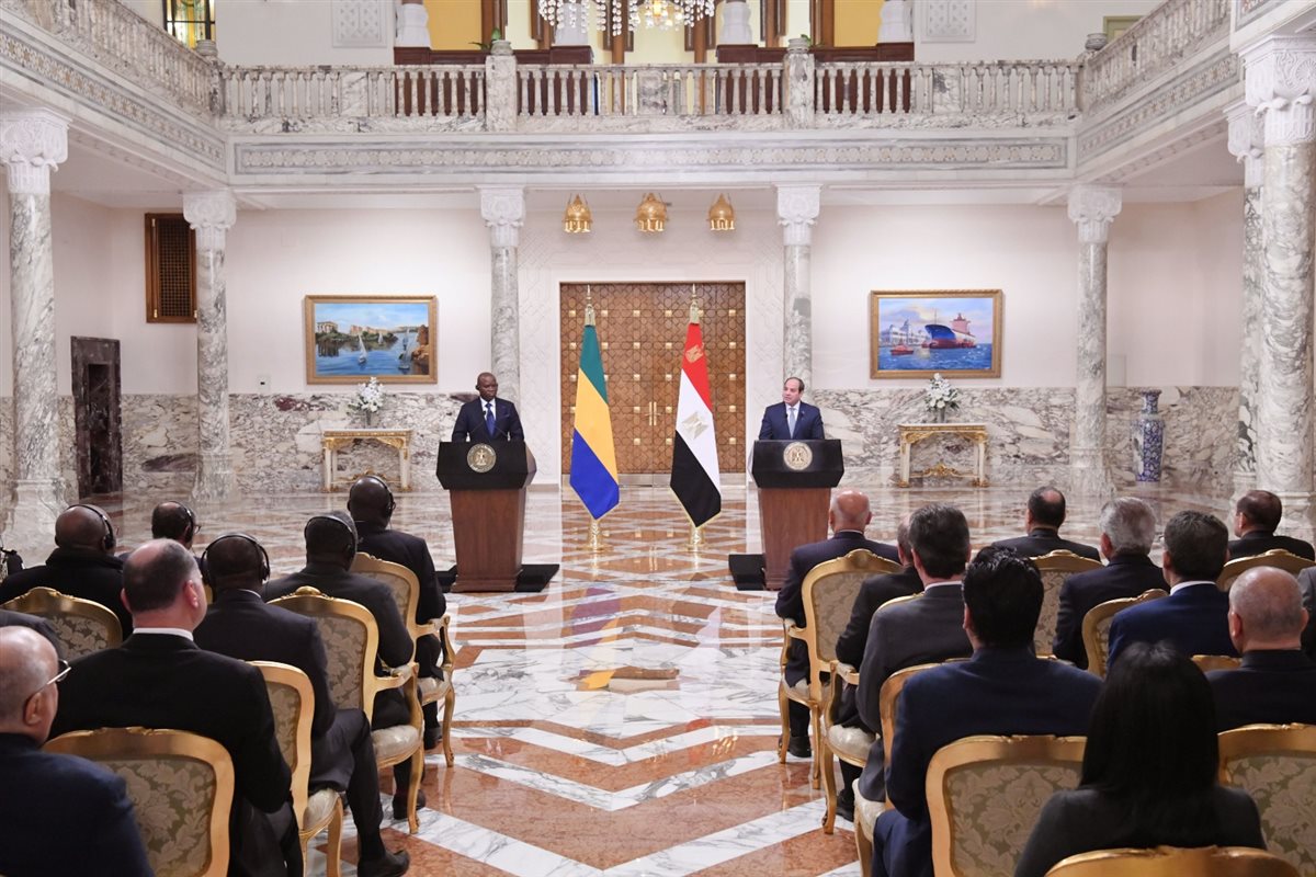 جاء ذلك خلال مؤتمر صحفي مشترك للرئيس السيسي ورئيس الجابون بقصر الاتحادية