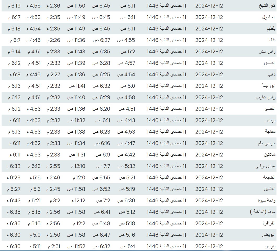 مواقيت الصلاة اليوم بتوقيت أسوان