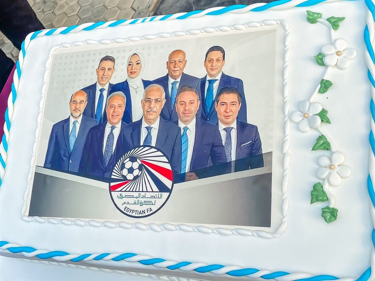 واحتفل موظفو الجبلاية مع أعضاء مجلس الإدارة وقدموا تورتة تحمل صور أعضاء المجلس عقب الاجتماع الذي عقد اليوم بمقر الاتحاد.