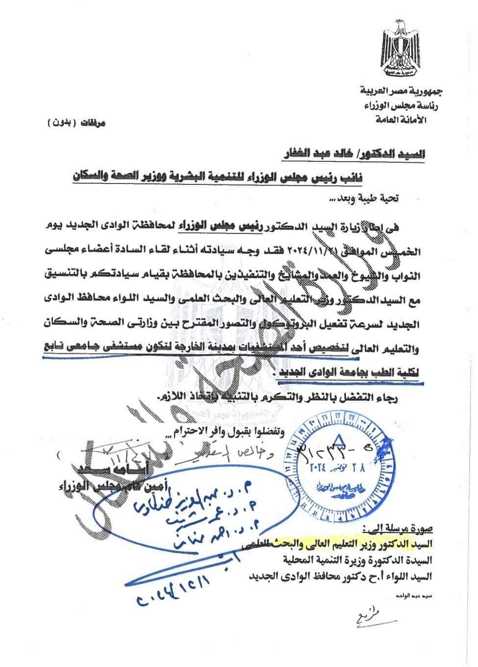 ضم أحد مستشفيات الخارجة لـ"طب الوادي الجديد"