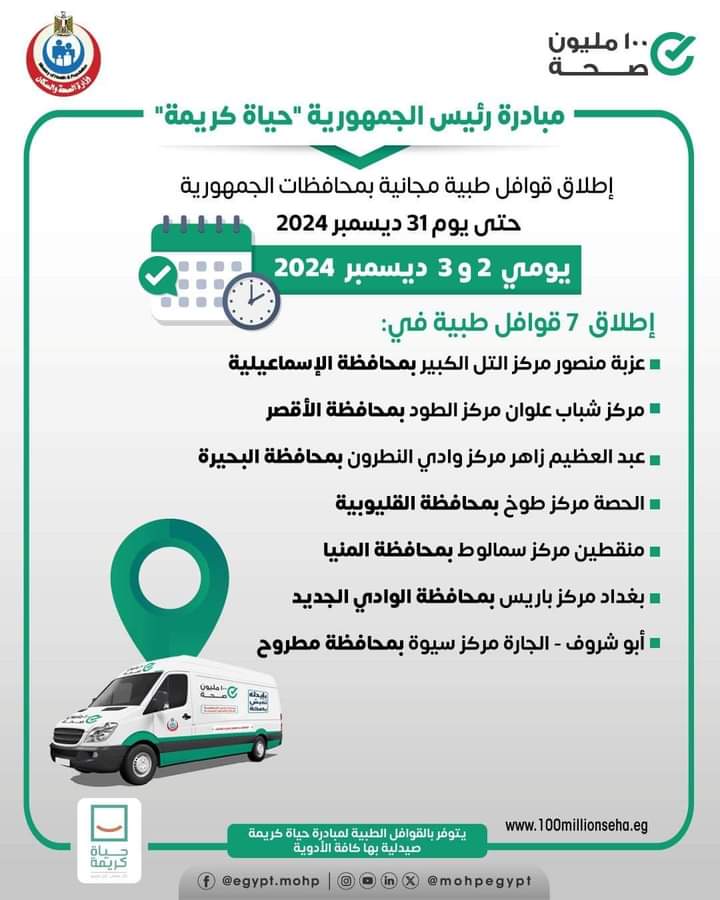 إطلاق قافلة طبية مجانية لواحة باريس في الوادي الجديد