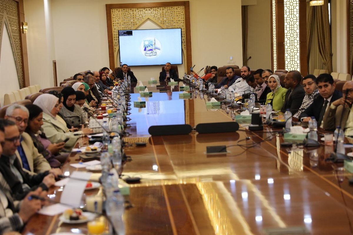 وقد استهل المفتي كلمتَه بالتعبير عن سعادته بهذا اللقاء، مؤكدًا أن الإعلام يشكل أداة محورية لنقل صحيح الدين وبناء الوعي، قائلًا: "الإعلام يعدُّ أداةً فعَّالة ننظر إليها كصوت للحق، وهي مسؤولية كبيرة تؤجرون عليها في الدنيا والآخرة، خاصة مع تسارع الأحداث في المنطقة العربية".