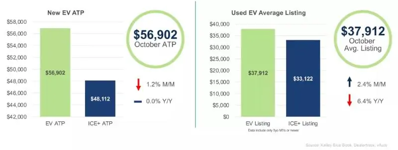 وفي الوقت نفسه، انخفض متوسط سعر الإدراج للسيارة الكهربائية المستعملة في أكتوبر إلى 37,912 دولارًا مما يمثل انخفاضًا بنسبة 6.4% مقارنة بالعام السابق، ويشير هذا الانخفاض إلى أنه مع تزايد تكلفة السيارات الكهربائية الجديدة، فإن نظيراتها المستعملة تتبع نفس النهج، مما يوفر نقطة دخول أكثر سهولة للمشترين، ومع ذلك، فإن هذا يعني أيضًا أن المالكين الحاليين يواجهون انخفاضًا أعلى في القيمة.