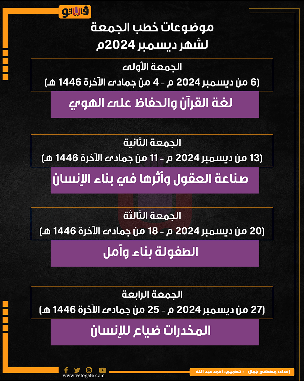 موضوعات خطب الجمعة لشهر ديسمبر 2024 م (إنفوجراف)