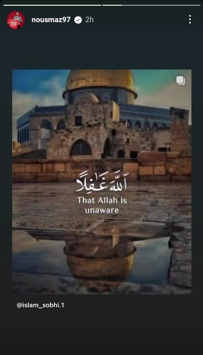 ونشر مزراوي على “إنستجرام” مقطعًا صغيرًا يحتوي على دعاء يقول: “اللهم أعن إخواننا المظلومين في فلسطين حتى يحققوا النصر. اللهم ارحم الموتى وداوِ الجرحى”. كما ظهر في المقطع علم فلسطين وهو يرفرف.