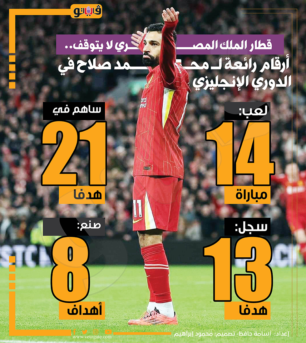 قطار الملك المصري لا يتوقف.. أرقام رائعة لـ محمد صلاح في الدوري الإنجليزي (انفوجراف)