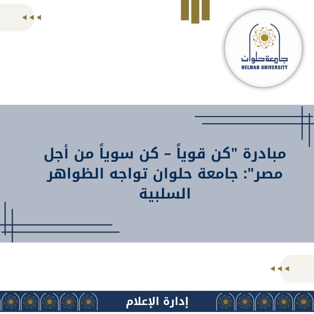 في إطار التوجيهات الرئاسية بضرورة القضاء على الظواهر السلبية التي تؤثر على المجتمعات المصرية، وانطلاقًا من دور جامعة حلوان الريادي في المسؤولية المجتمعية، تنظم وحدة برامج التنمية البشرية بالإدارة العامة لرعاية الشباب مبادرة نوعية بعنوان "كن قويًّا – كن سويًّا من أجل مصر".