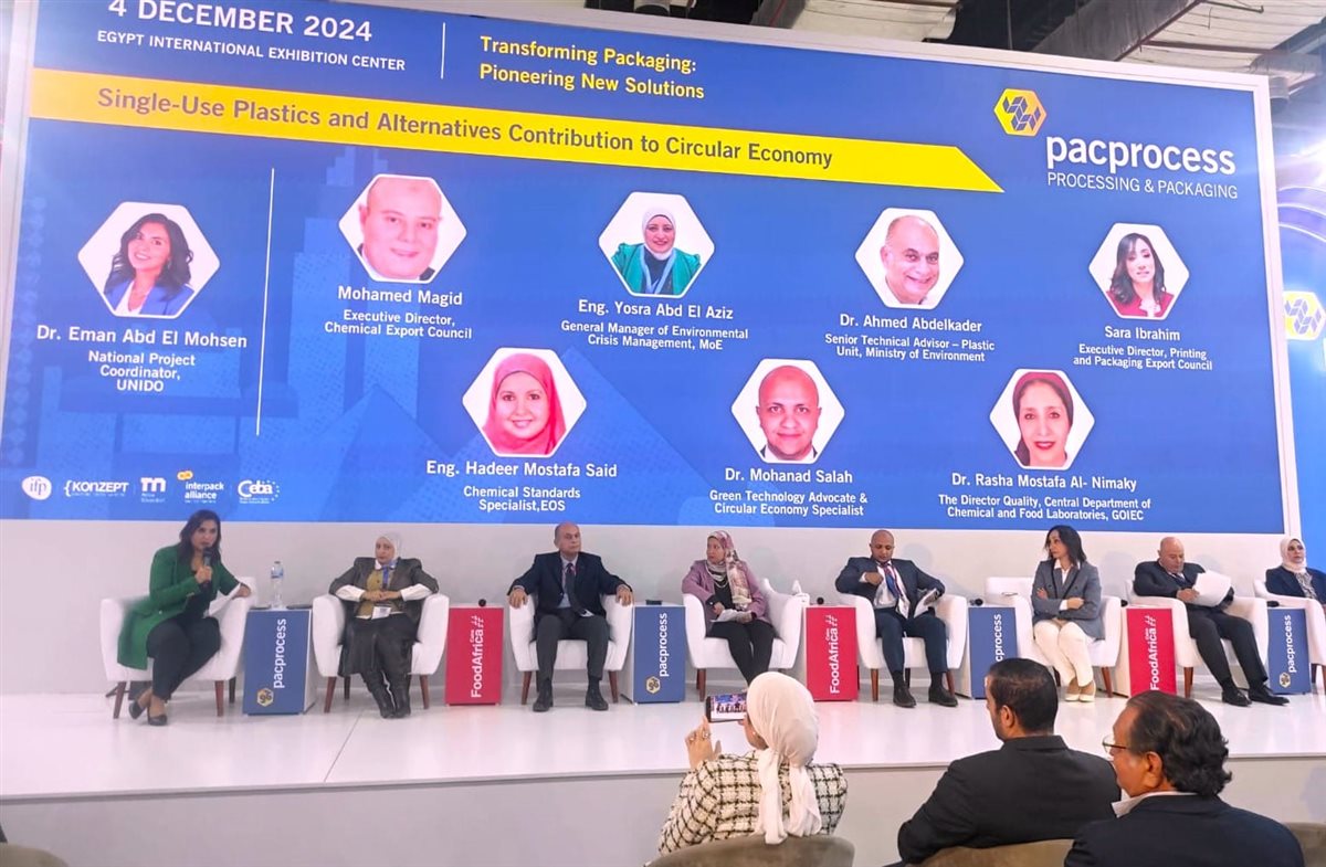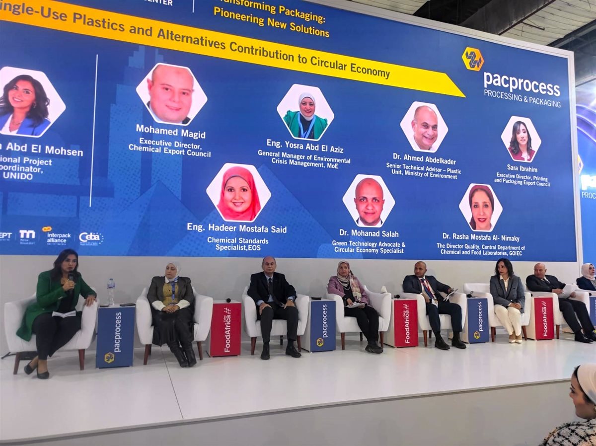 أدارت الجلسة إيمان عبد المحسن، منسق المشروع الوطني، منظمة اليونيدو، وذلك ضمن فعاليات معرض "باك بروسيس" فى دورته الخامسة والذى يحظى بمشاركة عدد كبير من رجال الأعمال والخبراء والمتخصصين فى مجال التعبئة والتغليف.