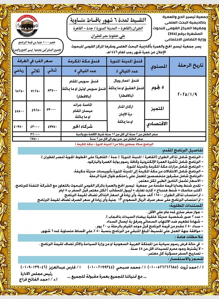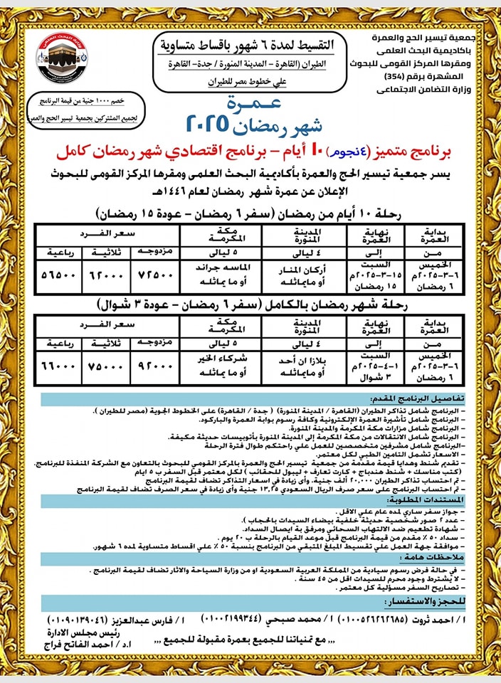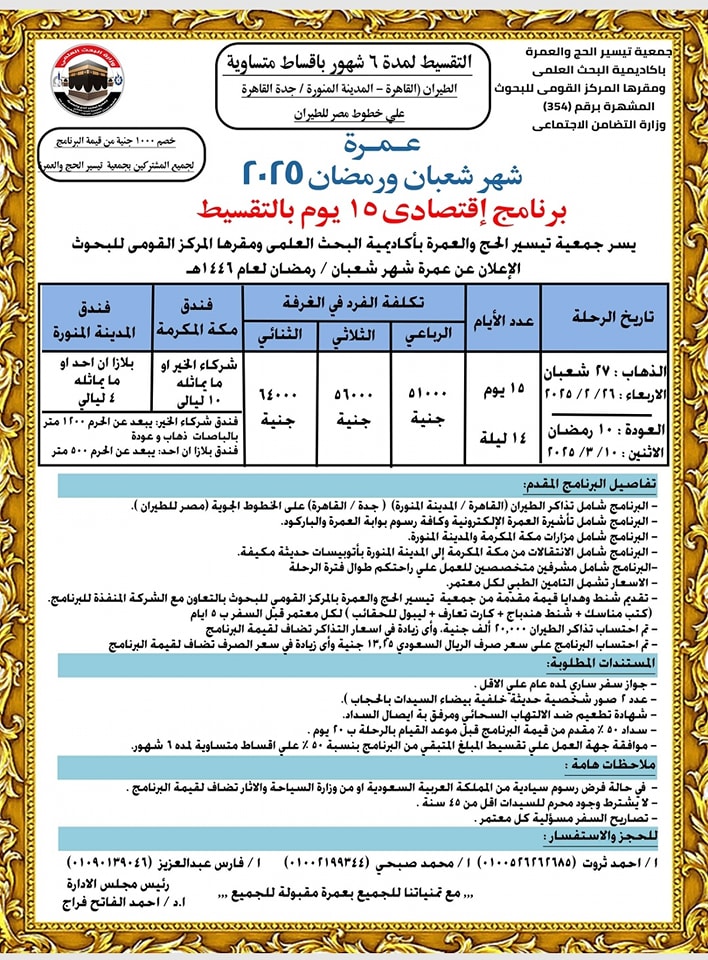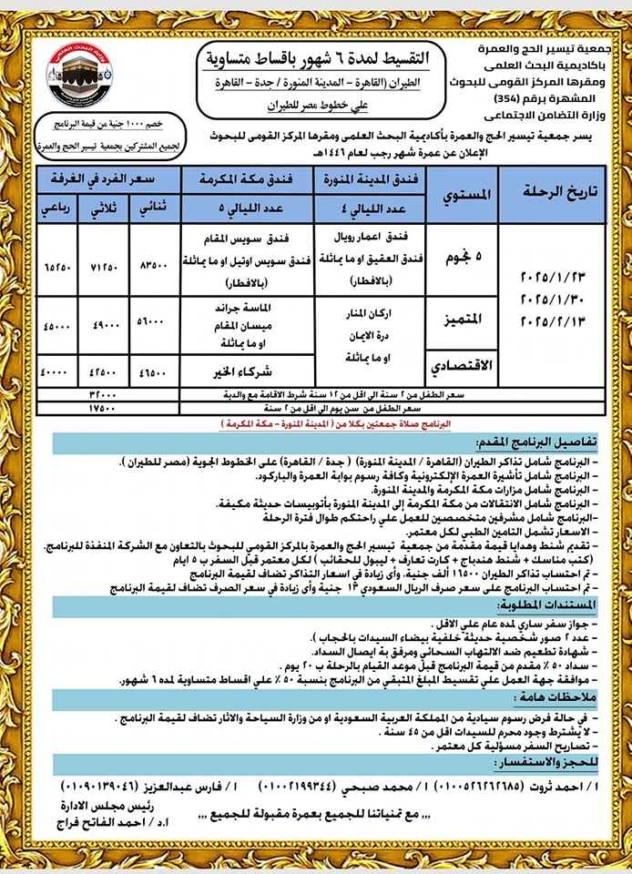 أسعار برنامج العمرة التابع للمركز القومي للبحوث
