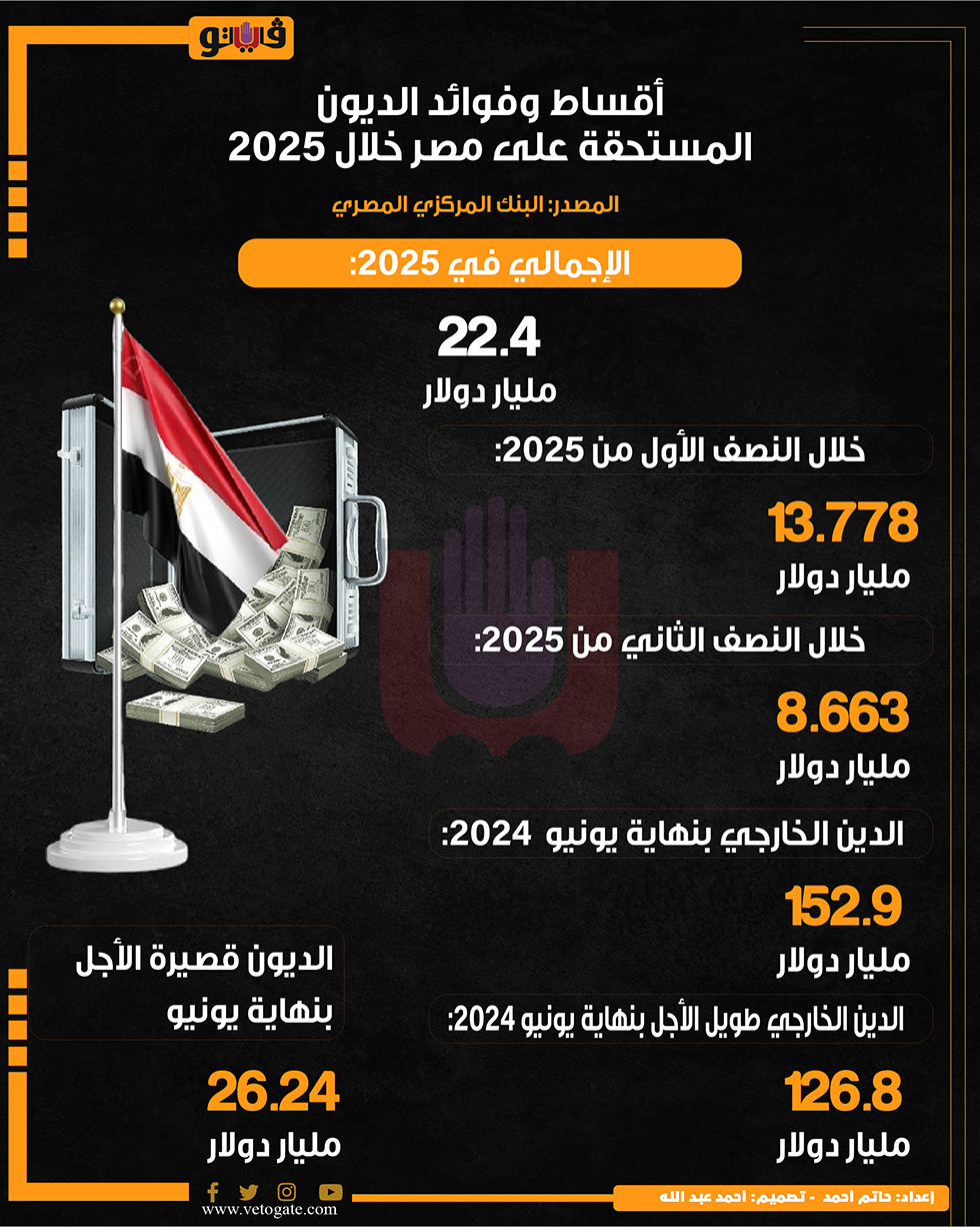 أقساط وفوائد الديون المستحقة على مصر خلال 2025 (إنفوجراف)