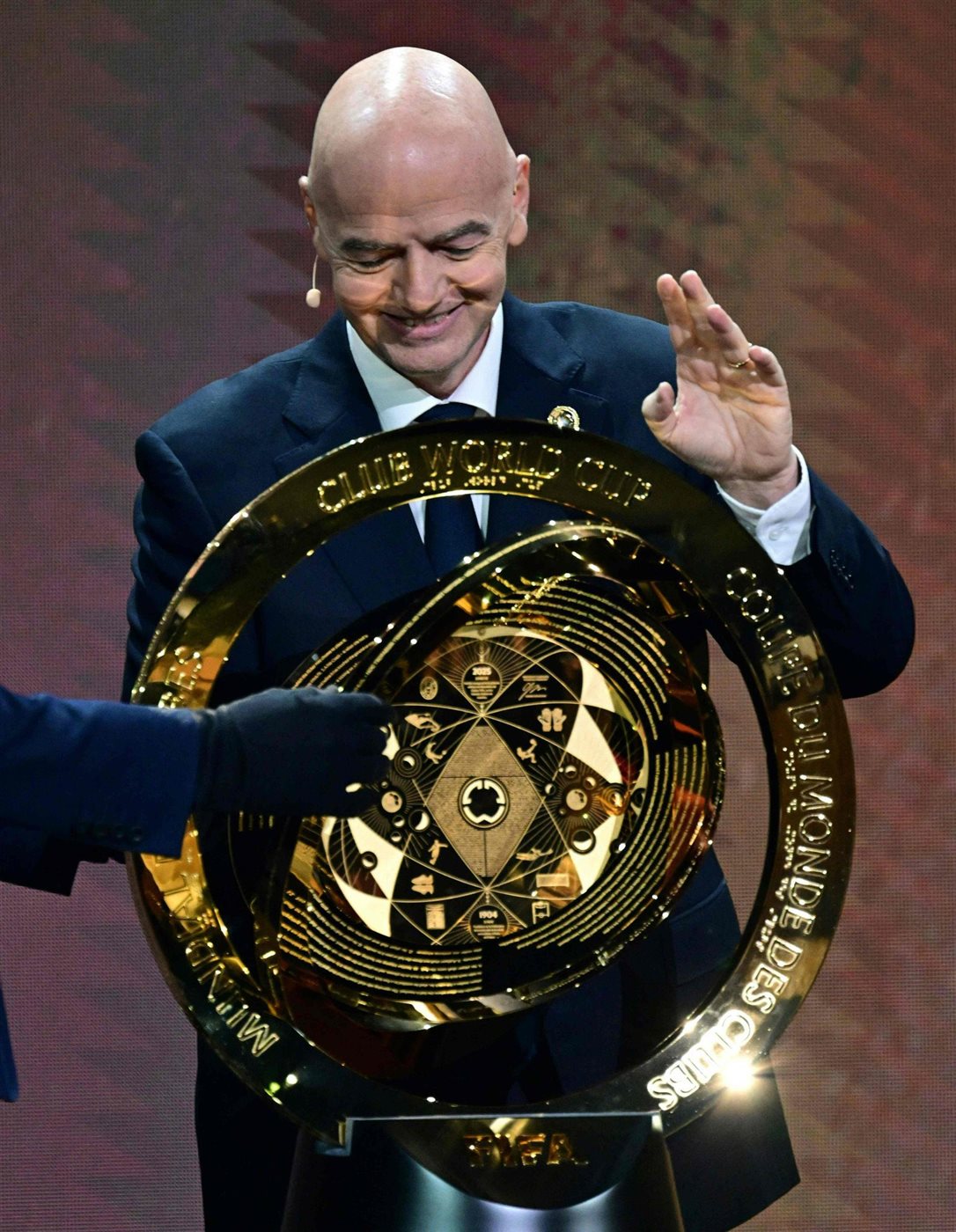كشف إيفانتينو، رئيس الاتحاد الدولي لكرة القدم، عن التصميم الجديد لـكأس بطولة العالم للأندية 2025، خلال فعاليات قرعة البطولة التي تقام في الولايات المتحدة الأمريكية لأول مرة بنظامها الجديد.