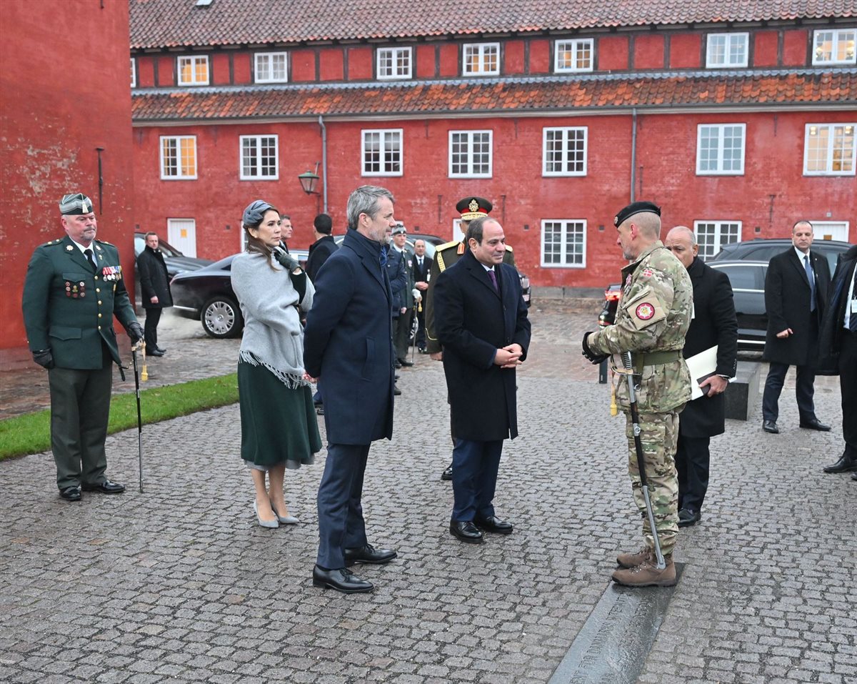 وصرح المتحدث الرسمي باسم رئاسة الجمهورية بأنه تم إجراء مراسم استقبال رسمية رفيعة المستوى للرئيس، وفقًا للبروتوكولات المتبعة في زيارات الدولة، حيث تم عزف السلام الجمهوري المصري، ثم استعراض حرس الشرف، كما وضع السيسي إكليلا من الزهور على قبر الجندي المجهول، ثم انتقل برفقة ملك وملكة الدنمارك إلى قصر أمالينبورج بواسطة عربات تجرها الخيول.