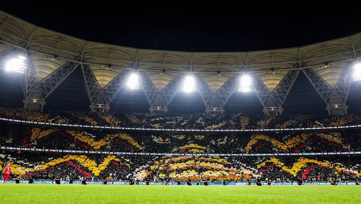 ورسمت جماهير اتحاد جدة لوحة فنية رائعة خلال مباراة النصر في قمة الدوري السعودي.