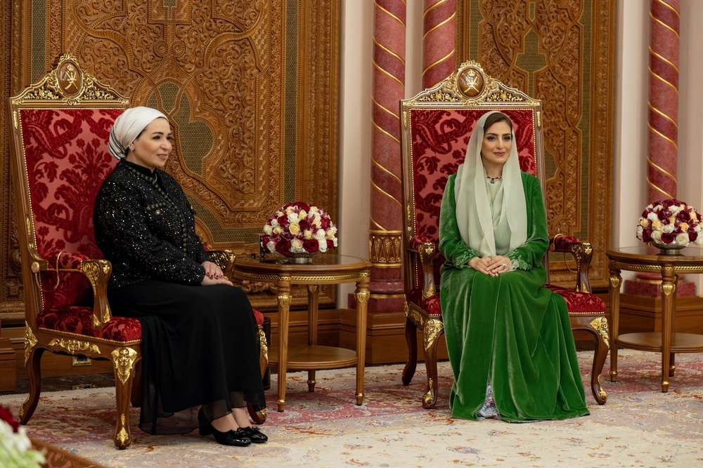 أول صور لـ لقاء قرينة الرئيس السيسي وحرم سلطان عمان
