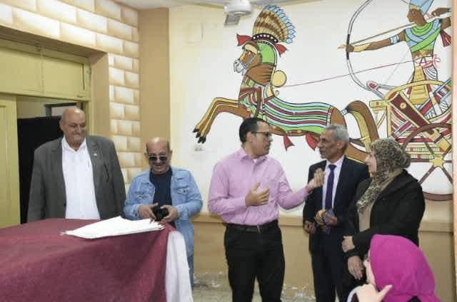 و كان في استقبال وكيل تعليم الدقهلية مدير المدرسة حسن ريحان لإطلاق مبادرة الجداريات حيث بدأ اليوم تنفيذ باكورة أعمال النحت والتركيب للجداريات التي تستهدف تخليد ذكرى بطولات شعب الدقهلية وتوثيق تراثها حتي يتسنى للأجيال الجديدة التعرف علي تاريخ محافظة الدقهلية العريق.