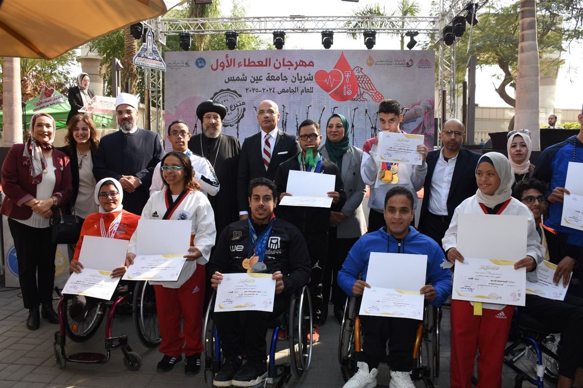و افتتح الدكتور محمد ضياء زين العابدين، رئيس الجامعة، والدكتورة غادة فاروق، نائب رئيس الجامعة لشئون خدمة المجتمع وتنمية البيئة، يرافقهم الدكتور محسن الألفي، رئيس مجلس جمعية شريان العطاء فعاليات المهرجان بحضور نخبة من الشخصيات البارزة، فضيلة الشيخ عمرو الورداني، أمين لجنة الفتوى بدار الإفتاء المصرية والأنبا أرميا، الأسقف العام ورئيس المركز الثقافي القبطي الأرثوذكسي والأمين العام المساعد لبيت العائلة المصري والدكتور أسامة عبد الحي نقيب الأطباء، والدكتور نعمة سعيد، ممثل منظمة الصحة العالمية بجمهورية مصر العربية، دكتورة امال أمام المدير التنفيذي للهلال الأحمر، ولفيف من السادة العمداء وعدد من الشخصيات الأكاديمية والطبية البارزة.