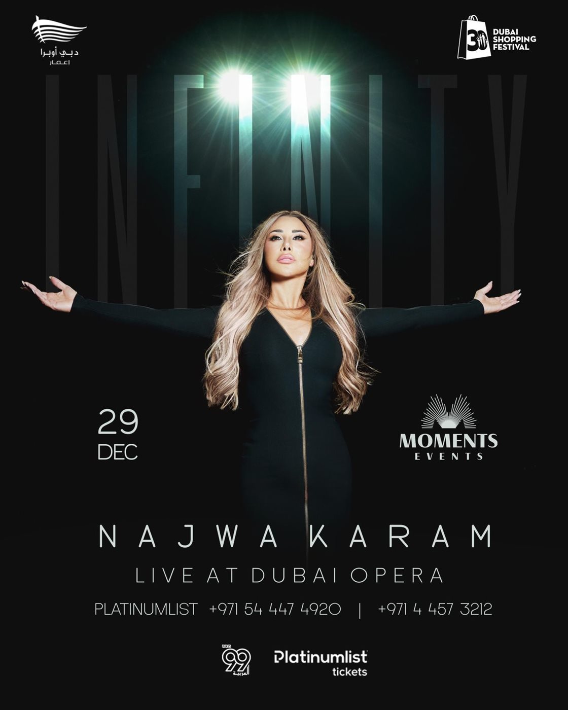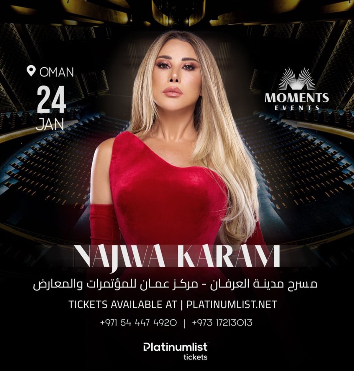 وتنطلق نجوى كرم في جولة غنائية عربية وعالمية بحفلين فى دولة الإمارات العربية المتحدة، من على مسرح دبي أوبرا يوم 29 ديسمبر 2024، حيث ستشدو نجوى بأجمل أغنياتها.