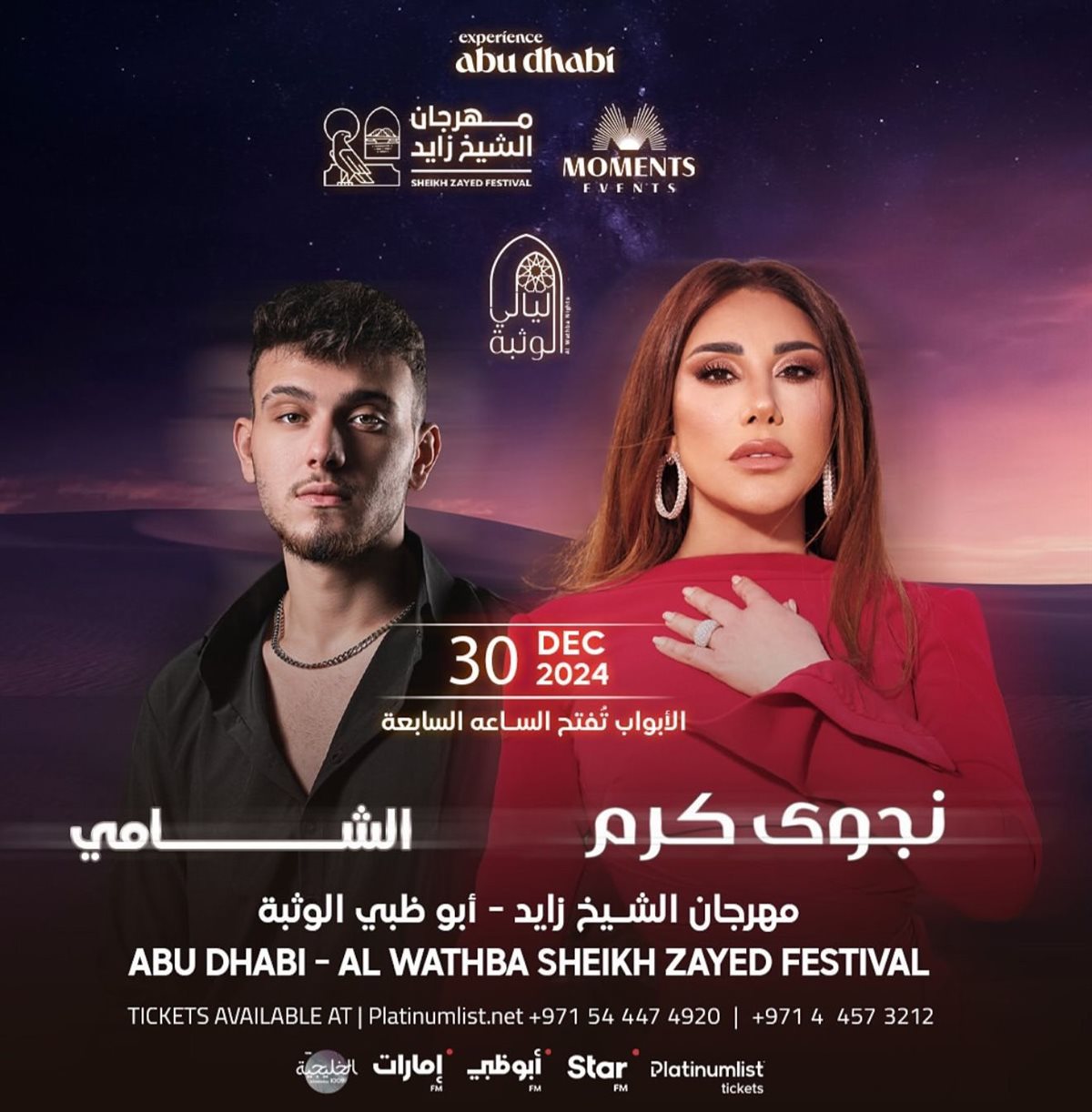 يلي ذلك حفل ثاني في أبوظبي ضمن فعاليات مهرجان الشيخ زايد 2024 يوم 30 ديسمبر 2024، بمشاركة الفنان الشامي، كذلك تقدم فى سلطنة عُمان حفلا في العاصمة مسقط على مسرح مدينة العرفان بمركز عُمان للمؤتمرات والمعارض يوم 24 يناير 2025، ضمن حفل سيحمل لقاء متجدد مع الجمهور العماني.