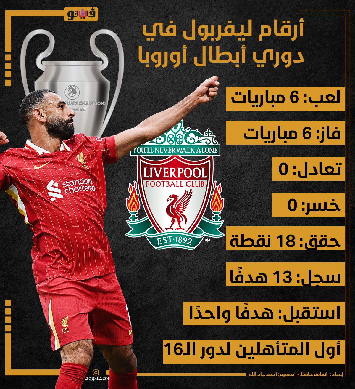 أرقام ليفربول في دوري أبطال أوروبا (إنفوجراف)