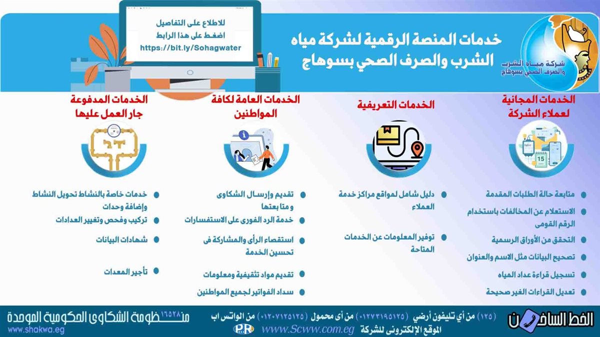 مياه سوهاج تفعيل المنصة الرقمية لخدمة العملاء وتقديم الخدمات عليها للمواطنين مجانا