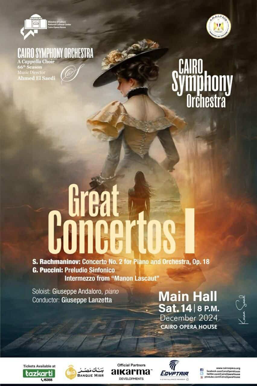 استحدثت دار الأوبرا المصرية برئاسة الدكتورة لمياء زايد سلسلة حفلات جديدة لأوركسترا القاهرة السيمفونى في إطار موسمه الـ ٦٦ تحت إشراف المدير الفنى والقائد الأساسي المايسترو أحمد الصعيدى وجاءت بعنوان " الكونشيرتو العظيم " وينطلق أولها بقيادة المايسترو الإيطالى جوزيبى لانزيتا ومشاركة مواطنه عازف البيانو جوزيبي اندالورو وذلك فى الثامنة مساء السبت 14 ديسمبر على المسرح الكبير.