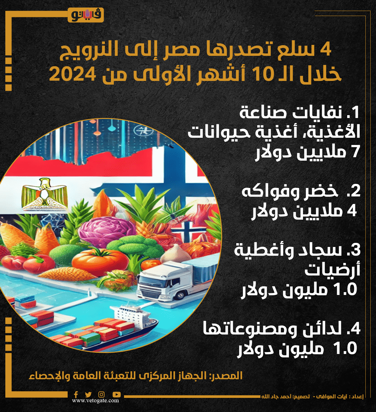 4 سلع تصدرها مصر إلى النرويج خلال الـ 10 أشهر الأولى من 2024 (إنفوجراف)