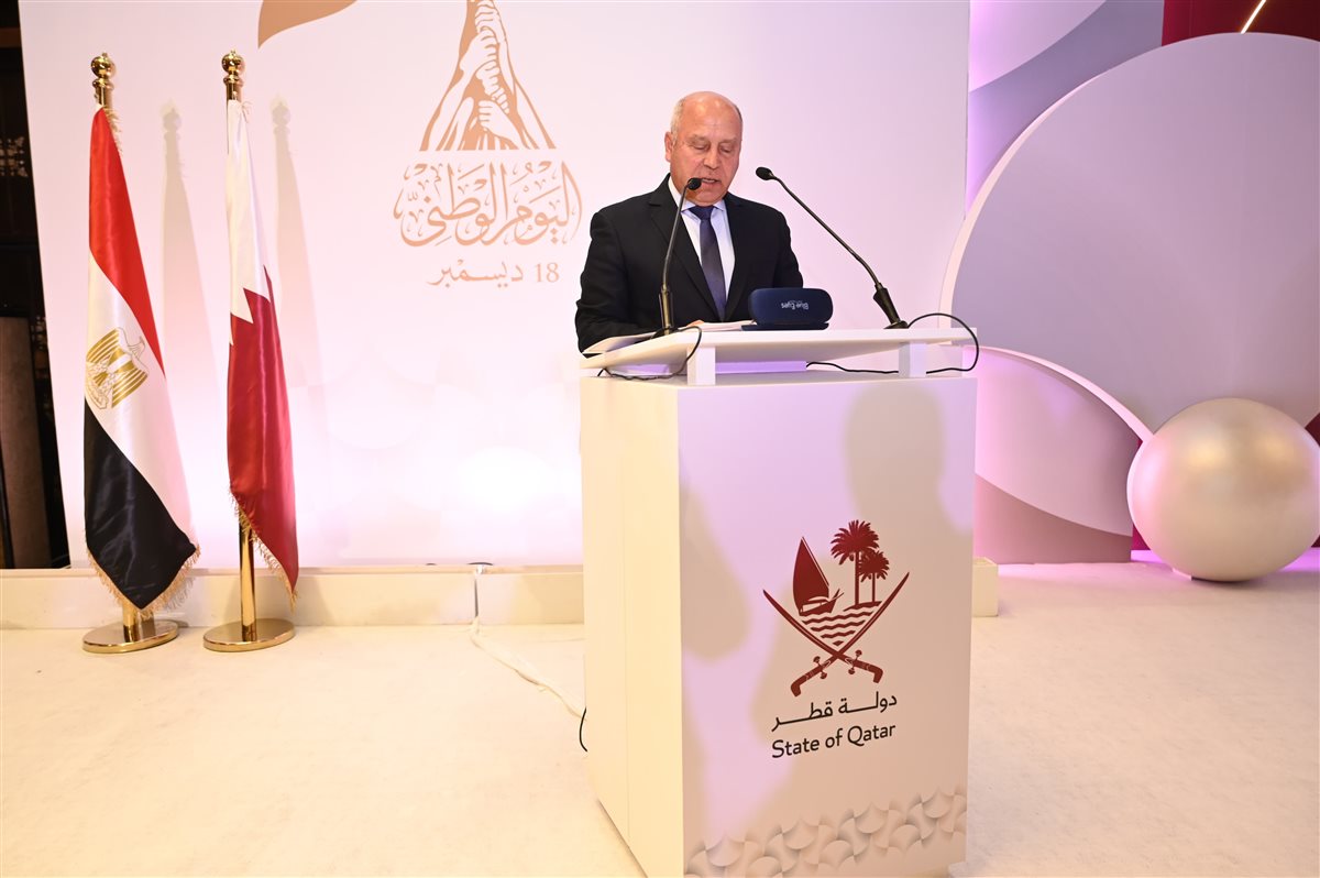 وقال إنه: "يسعدنى أن أتقدم بالأصالة عن نفسي والإنابة عن الدكتور رئيس مجلس الوزراء ببالغ التهنئة للشعب القطرى الشقيق بمناسبة العيد الوطنى لدولة قطر، كما أعرب عن سعادتى بحضور هذا الإحتفال باليوم الوطنى لدولة قطر الشقيقة في ضوء العلاقات التاريخية بين جمهورية مصر العربية ودولة قطر الشقيقة التي طالما جمع مصر بها وبشعبها الشقيق علاقات أخوة وتعاون على مستوى مختلف الأصعدة".