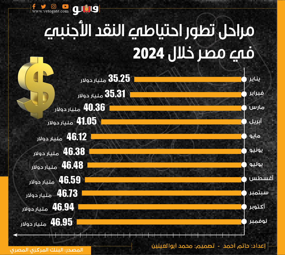 مراحل تطور احتياطي النقد الأجنبي في مصر خلال 2024 (إنفوجراف)