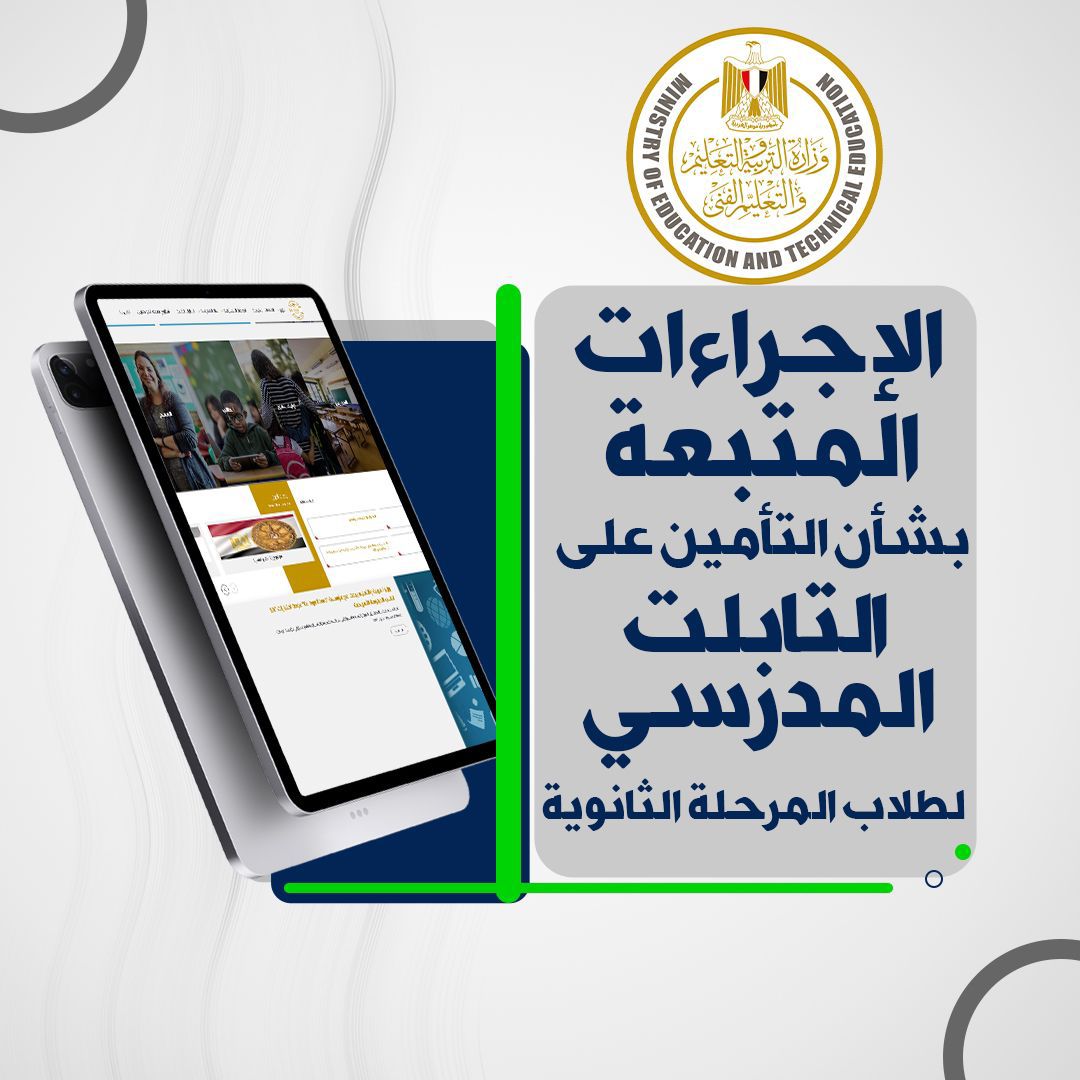 كشفت وزارة التربية والتعليم والتعليم الفني عن الإجراءات المتبعة بشأن التأمين على أجهزة التابلت المدرسي لطلاب الصف الأول الثانوي.