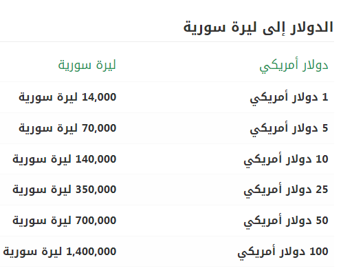 وسجل سعر الليرة السورية مقابل الدولار الآن حوالى 14000 ليرة سورية للشراء.