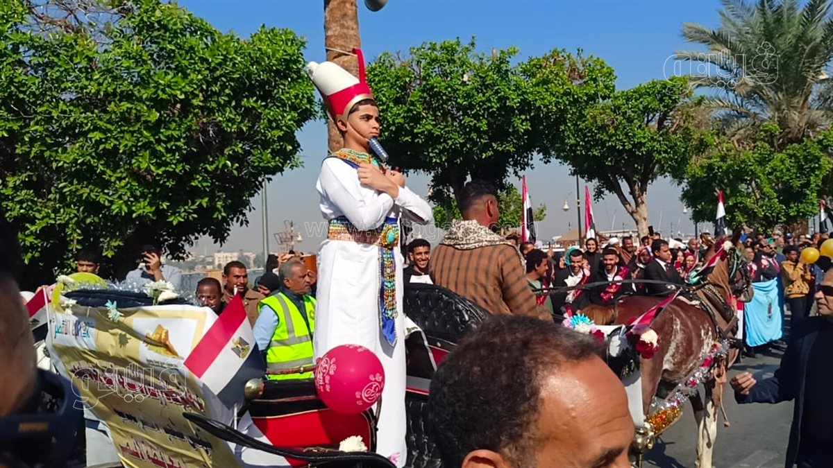 شهد احتفال العيد القومي لمحافظة الأقصر عروضًا فنية ممتعة، اليوم الخميس، إذ ظهر الأطفال بالزي الفرعوني، في عرض الملك والملكة مستقلين عربات الحنطور من كورنيش النيل في حضور كثيف من أبناء الأقصر.