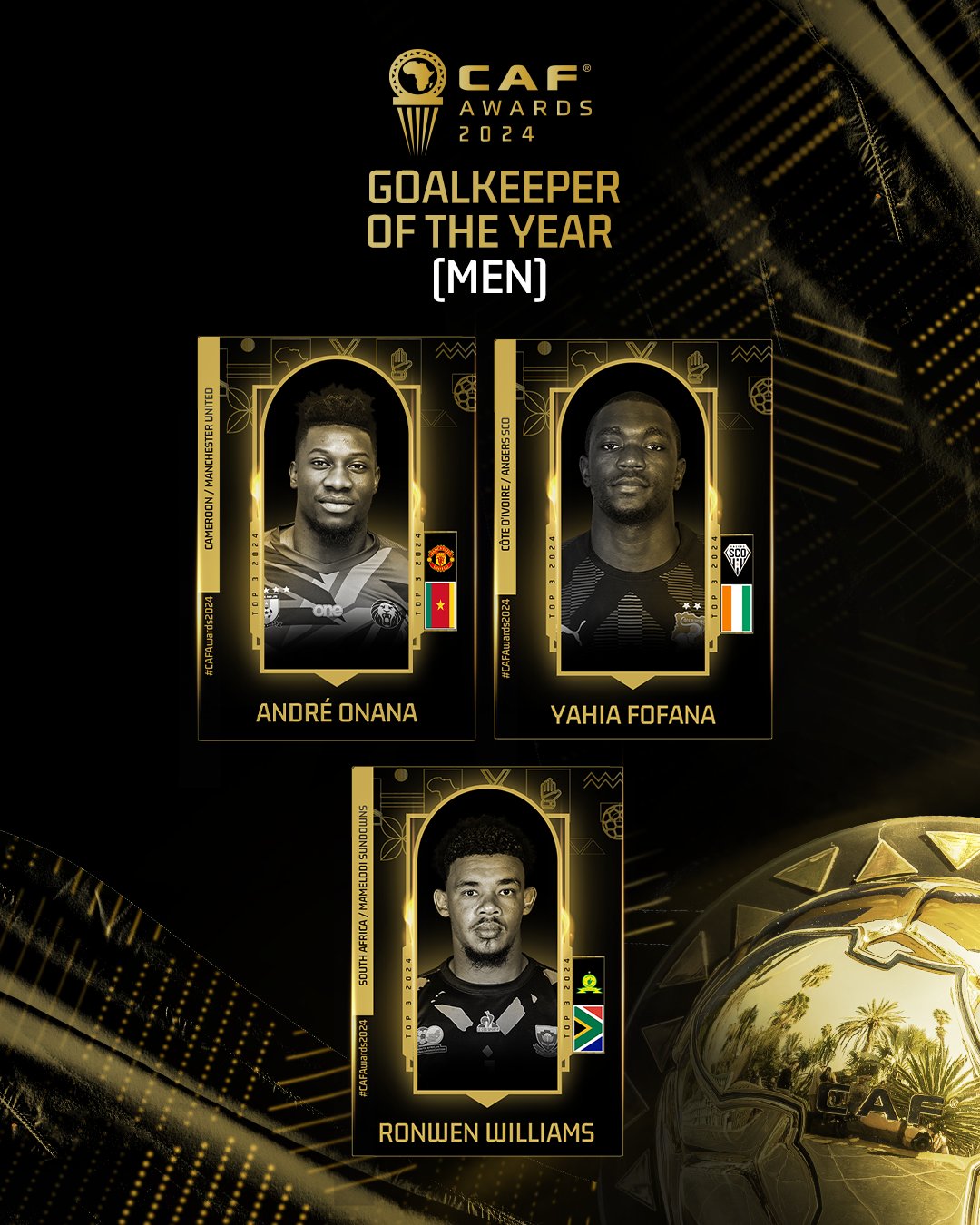قائمة المرشحين النهائية لجائزة أفضل حارس في أفريقيا 2024