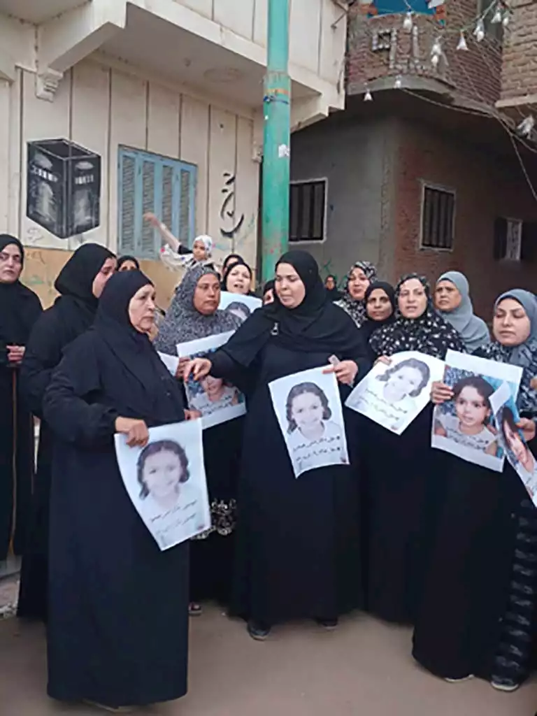 تحدث محقق فيتو مع الجيران الذين عبروا عن حزنهم الشديد عن فقدان الطفلة مكة ممسكين بأيديهم لافتات مدون عليها «حق مكة لازم يرجع» ومطالبين بالقصاص العاجل من القاتلة التي استباحت دم الطفلة بدون سبب واضح.