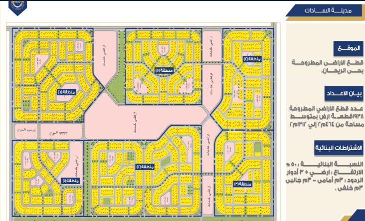 تفاصيل طرح 1938 قطعة أرض إسكان متميز بمدينة السادات