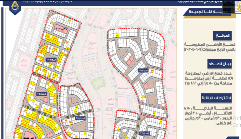 تفاصيل طرح أراضي الإسكان المتميز بقنا الجديدة