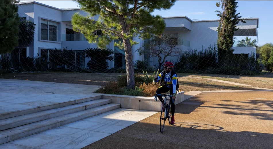 قاد الدراج السوري باسل الصوفي دراجته مسافة 40 كيلومترًا بدءًا من مدينة اللاذقية في شمال غرب البلاد يوم الجمعة لزيارة منتجع عائلة الأسد الساحلي الخاص في الوقت الذي تجول فيه سكان محليون بأنحاء المجمع لأول مرة منذ عقود.