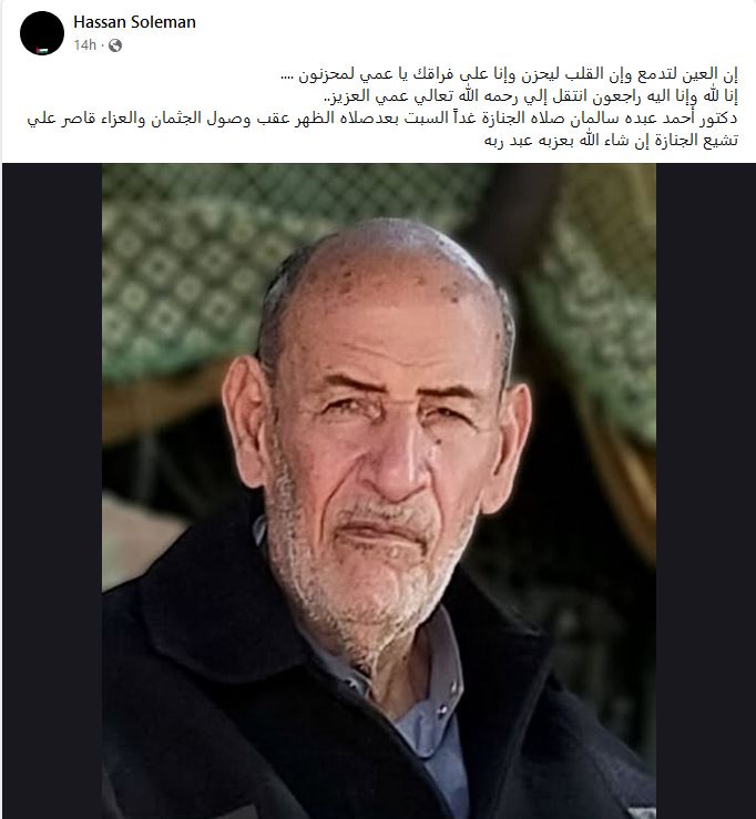 كما قال حسن سالمان ابن شقيق الطبيب الراحل على صفحته بـ"فيس بوك": "إن العين لتدمع وإن القلب ليحزن وإنا على فراقك يا عمي لمحزنون....إنا لله وإنا اليه راجعون انتقل إلى رحمة الله تعالى عمي العزيز.. دكتور أحمد عبده سالمان".