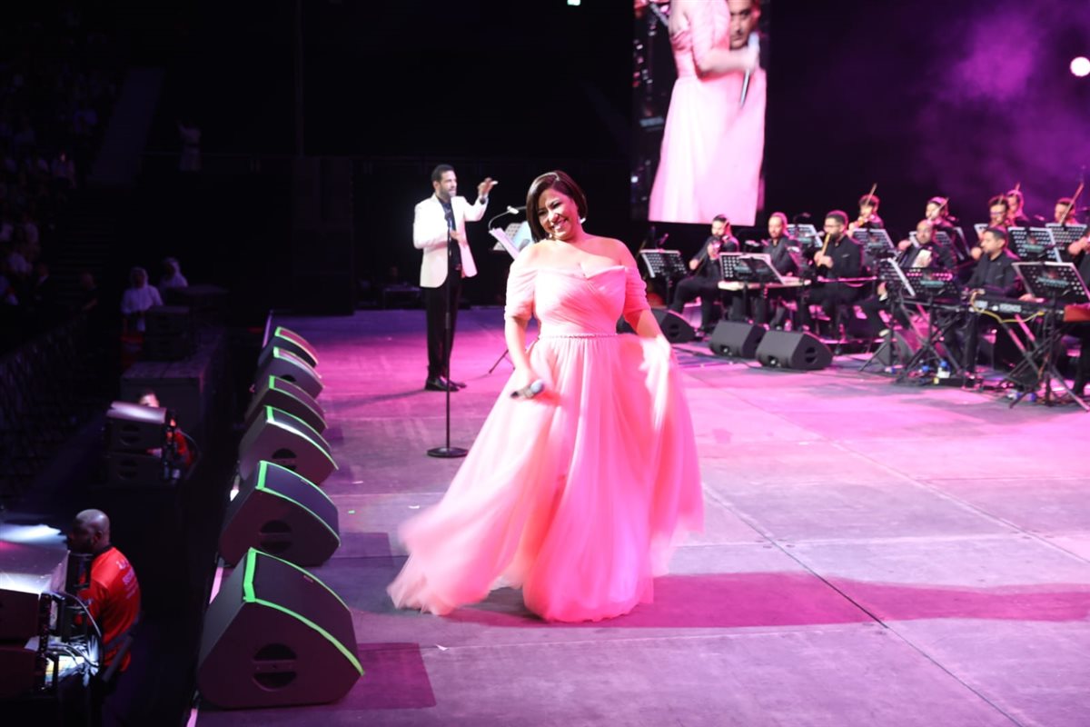 تألقت شيرين على المسرح بإطلالة مميزة خطفت بها الأنظار، وقدمت باقة من أشهر أغانيها الرومانسية والعاطفية، بصحبة المايسترو مدحت خميس، منها "اللي يقابل حبيبي"، "مشاعر"، "كدابين"، "متحاسبنيش"، "بص بقى"، "بتمنى أنساك"، "صبري قليل"، "آه ياليل"، "على باللي"، و"عيون القلب" لنجاة الصغيرة، بالإضافة إلى ميدلي من أشهر أغانيها والتي تفاعل معها الجمهور بشكل كبير وطلبوا تكرارها مرة أخرى.