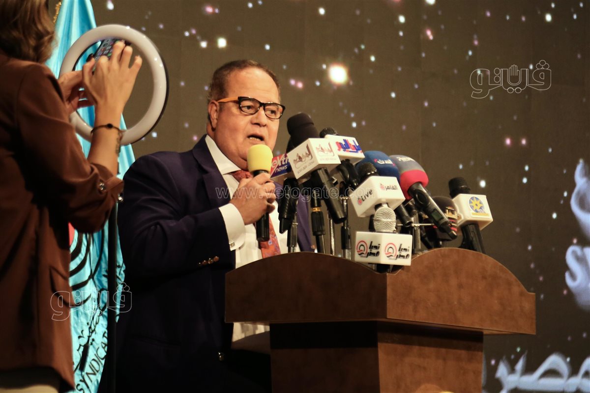 وأضاف في كلمته خلال حفل افتتاح المؤتمر:" أقف اليوم بينكم في حضرة لفيف من كبار أساتذة المهنة، وكبار النقابيين أصحاب الحضور الأكبر في تاريخ الصحافة مصريًا وعربيًا ودوليًا.. أقف بينكم بينما تحمي هذه القاعة "قاعة الشهداء" أرواح عظماء الصحافة وأساتذتها الكبار.. وأرواح شهدائنا وشهداء الصحافة في فلسطين والعالم، وترفرف حولنا اليوم أرواح أكثر من 194 شهيدًا للصحافة الفلسطينية".