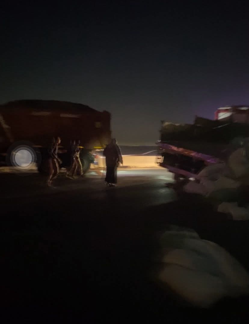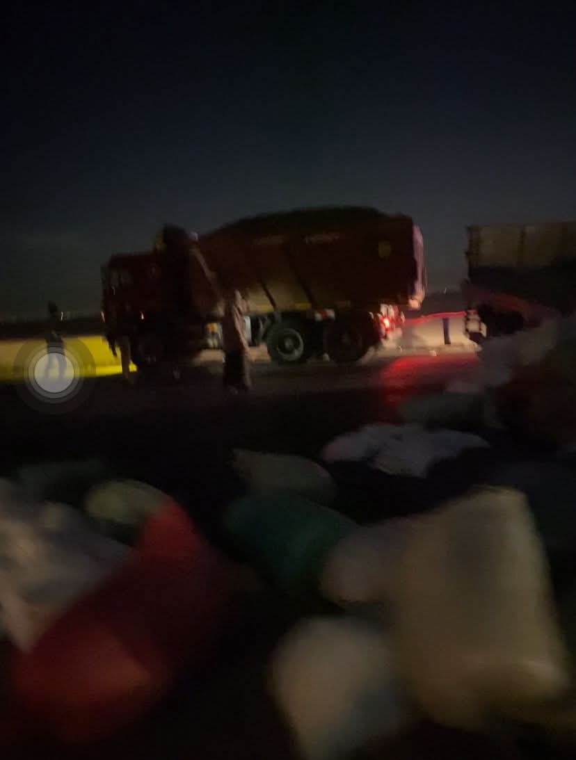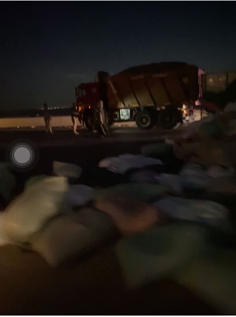 انقلاب تريلا محملة بمواد غذائية