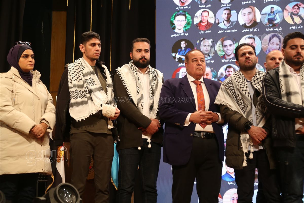 شارك في حفل افتتاح المؤتمر العام السادس لنقابة الصحفيين، عدد من الصحفيين الفلسطينيين المصابين الموجودين في مصر.